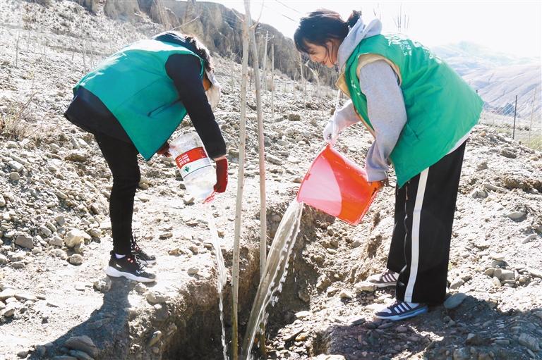 志愿者在為樹(shù)苗澆水