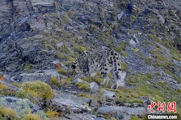 紅外線相機拍到的國家一級保護(hù)動物雪豹活動影像?!⌒慢埧h林業(yè)和草原局供圖