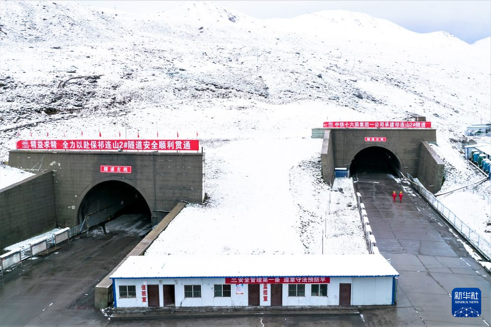 7月3日,國道569曼德拉至大通公路祁連山2號隧道實(shí)現(xiàn)右線貫通。(中鐵十六局集團(tuán)供圖)
