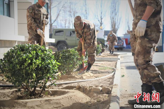 陽春三月植樹節(jié) 高原戰(zhàn)士為軍營添新綠