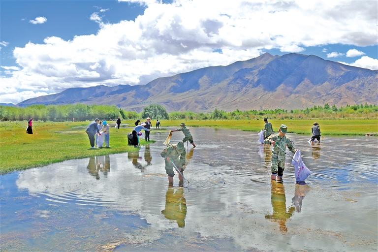 為充分尊重自然、順應(yīng)自然、保護(hù)自然,提高廣大黨員骨干的綠色環(huán)保意識,6月30日,桑珠孜區(qū)人民武裝部聯(lián)合桑珠孜區(qū)退役軍人事務(wù)局,組織官兵與江當(dāng)鄉(xiāng)、年木鄉(xiāng)退役軍人、民兵黨員在雅江中游河谷黑頸鶴保護(hù)區(qū)開展呵護(hù)綠水青山“七一”主題黨日活動?;顒又?,桑珠孜區(qū)人民武裝部組織黨員重溫入黨誓詞。隨后,30多名黨員開展了拉網(wǎng)式清理水域漂浮物和白色垃圾,給“高原精靈”營造一個(gè)美麗舒適的“家”。