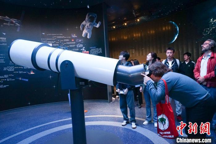 圖為一位外國政黨代表在青海省自然資源博物館內體驗用VR技術呈現(xiàn)的天文望遠鏡。馬銘言 攝