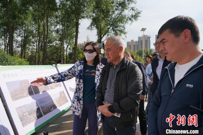 圖為兩位烏茲別克斯坦政黨代表(右一、中)走進西寧市北山美麗園了解該地原貌舊址。馬銘言 攝