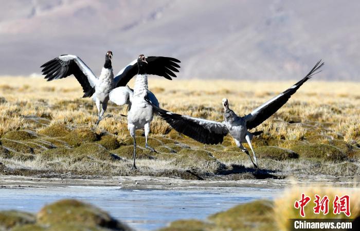 黑頸鶴是全球十五種鶴類中,唯一在高原地區(qū)繁殖和越冬的鶴類,屬中國國家一級保護野生動物。近日,中新社記者走進西藏那曲申扎縣這一黑頸鶴的重要繁殖地,了解“高原精靈”黑頸鶴的越冬遷徙。