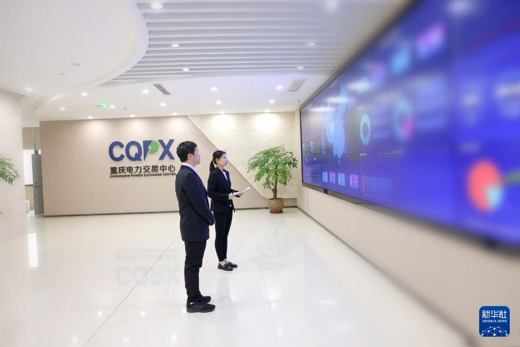 圖為工作人員正在查看電力交易情況。(國網(wǎng)重慶市電力公司供圖)