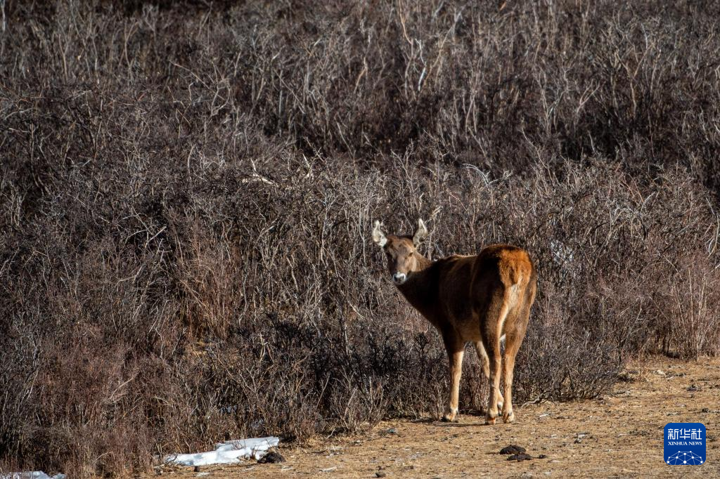 西藏山南市桑日西藏馬鹿縣級自然保護區(qū)內(nèi)的西藏馬鹿(1月14日攝)。新華社記者 田金文 攝