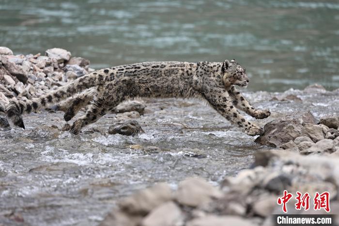 圖為三江源國家公園瀾滄江源園區(qū)拍攝的雪豹躍過河流。(資料圖)索南旦增攝