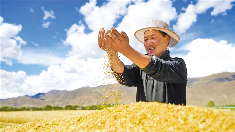 把牢“兩條底線”抓落實,確保國家糧食安全,確保不發(fā)生規(guī)模性返貧。2023年,西藏糧食生產(chǎn)再創(chuàng)佳績,共落實糧食播種面積291.88萬畝,其中青稞222.87萬畝,產(chǎn)量達108.87萬噸,耕地保護和糧食安全責(zé)任得到全面落實。完成續(xù)建和新建高標準農(nóng)田67.4萬畝,復(fù)耕撂荒地2.39萬畝。青稞良種覆蓋率達93%,主要糧食作物(青稞)耕種收綜合機械化率達71%以上。嚴格落實防返貧動態(tài)監(jiān)測幫扶機制,監(jiān)測范圍擴大至7000元(含)以下,組織開展防返貧監(jiān)測幫扶集中排查,強化部門預(yù)警聯(lián)動,落實“一戶一策”幫扶舉措,切實做到早發(fā)現(xiàn)、早干預(yù)、早幫扶。