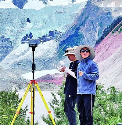 成都理工大學科研人員使用無人機對冰川進行熱紅外和正射影像作業(yè)。葉川攝/光明圖片