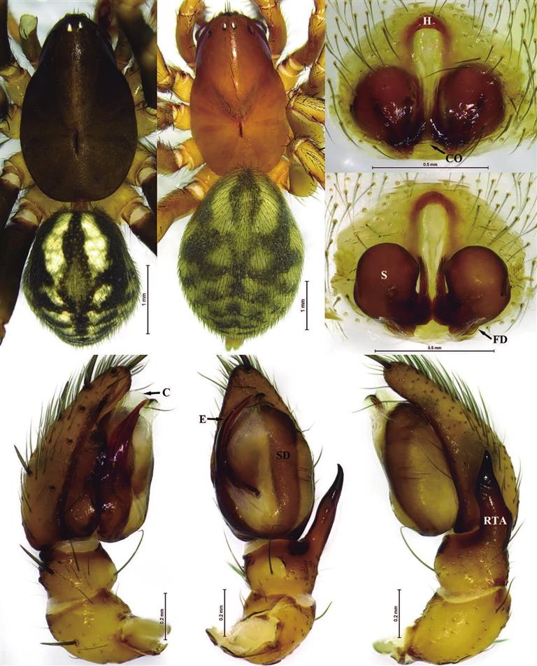 5種擬平腹蛛新種分別為察隅阿斯蛛(采自察隅縣)、達(dá)娃阿斯蛛(采自墨脫縣)、米古馬利蛛(采自察隅縣)、墨脫馬利蛛(采自墨脫縣)和亞東馬利蛛(采自亞東縣)。