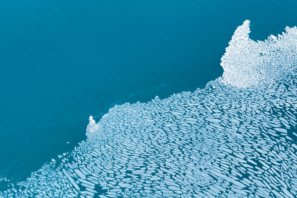 這是2024年4月11日在青海湖拍攝的部分未融化的湖冰(無(wú)人機(jī)照片)。新華社記者 張龍 攝
