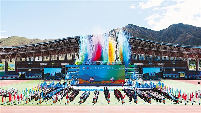 6月22日,拉薩首屆農(nóng)牧民運(yùn)動(dòng)會(huì)在拉薩市群眾文化體育中心開(kāi)幕。來(lái)自全市各縣(區(qū))、功能園區(qū)的11支代表隊(duì)500余名運(yùn)動(dòng)員參賽。
