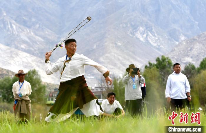 當斜挎在身的放牧工具變身運動會上的比賽項目,參賽選手和觀眾都覺得難度提高了不少。“平時放牧,用古朵甩石頭只是一個大概的方向,能憑借聲音指揮牲畜或者嚇退野獸就行。比賽可不是這樣,得擊中60米外的目標。”盡管難度不小,來自西藏拉薩市林周縣唐古鄉(xiāng)的多吉赤多依舊很高興能參加這樣的比賽。