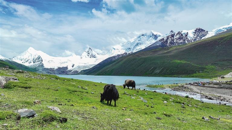 薩普雪山,坐落于那曲市比如縣羊秀鄉(xiāng)的普宗溝深處,是大自然的杰作。這座壯麗的雪山腳下,冰川如同時間的印記,靜靜流淌;湖泊如鏡,倒映著天空的純凈與雪山的威嚴(yán);廣闊的草場綠意盎然,牛羊成群,和諧共生。這里的景致宛如人間仙境,美得令人窒息,讓無數(shù)游客和攝影愛好者神往。