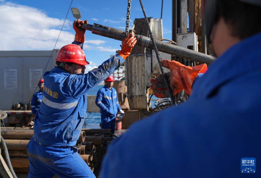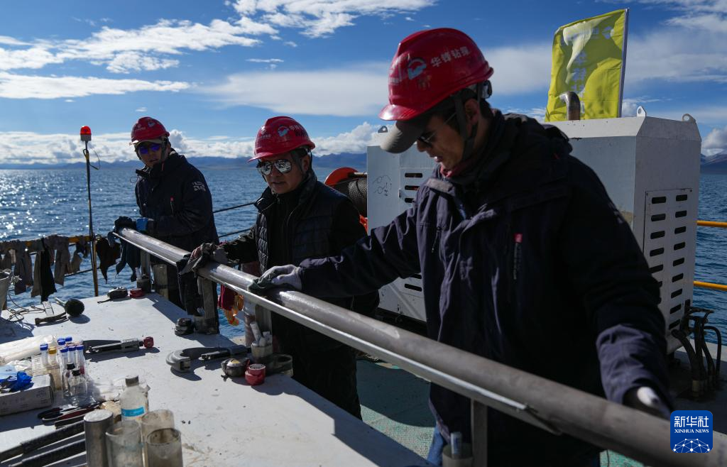 在海拔超過(guò)4700米的西藏納木錯(cuò),湖泊巖芯鉆探工作正在開(kāi)展中。