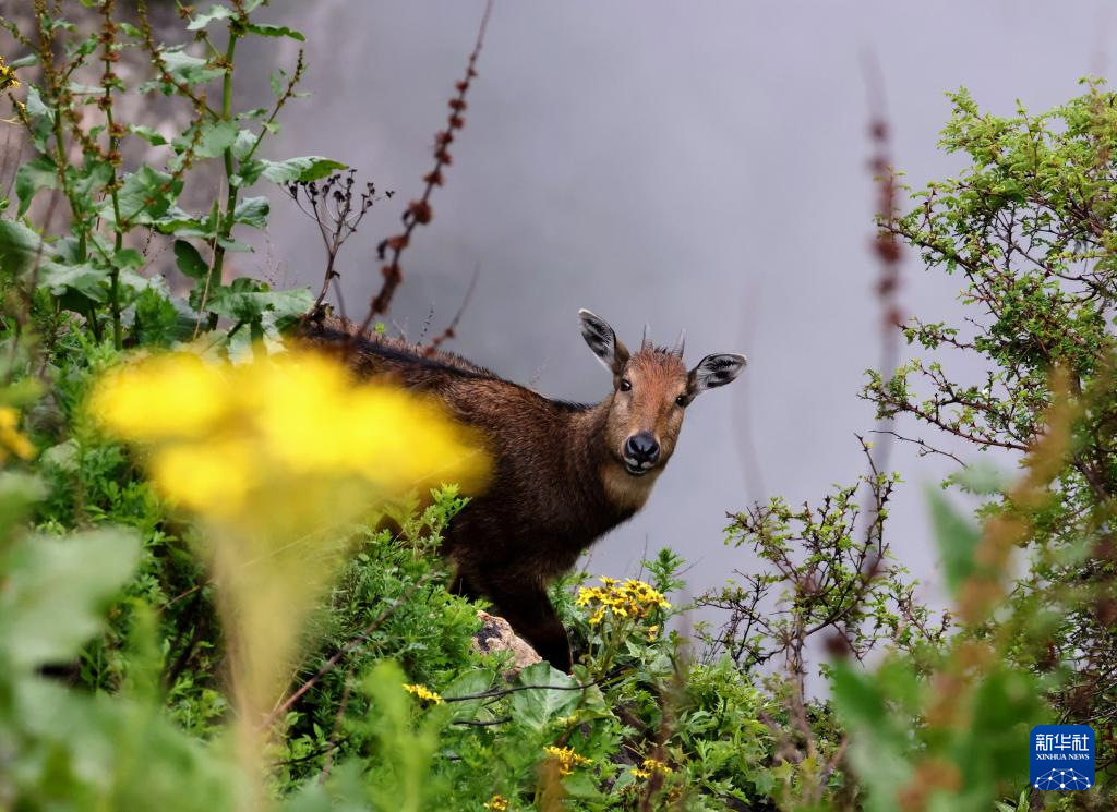 這是7月23日拍攝的成年雌性喜馬拉雅斑羚。新華社記者 姜帆 攝