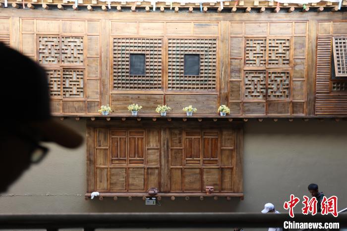 7月24日,參加“中國(guó)式現(xiàn)代化的萬(wàn)千氣象·網(wǎng)絡(luò)名人青海行”活動(dòng)的網(wǎng)絡(luò)名人,抵達(dá)江河源頭青海玉樹(shù)藏族自治州,在玉樹(shù)州博物館一覽自然與人文之美。玉樹(shù)州博物館是玉樹(shù)地震災(zāi)后重建十大標(biāo)志性建筑之一,分為序廳、自然展區(qū)、人文展區(qū)、臨時(shí)展廳。其通過(guò)實(shí)物標(biāo)本等方式,展示了三江源和可可西里的野生動(dòng)物、草地、森林,以及玉樹(shù)州的歷史、建筑、服飾、飲食等。圖為玉樹(shù)州博物館展示的建筑文化。中新社記者 張?zhí)砀?攝