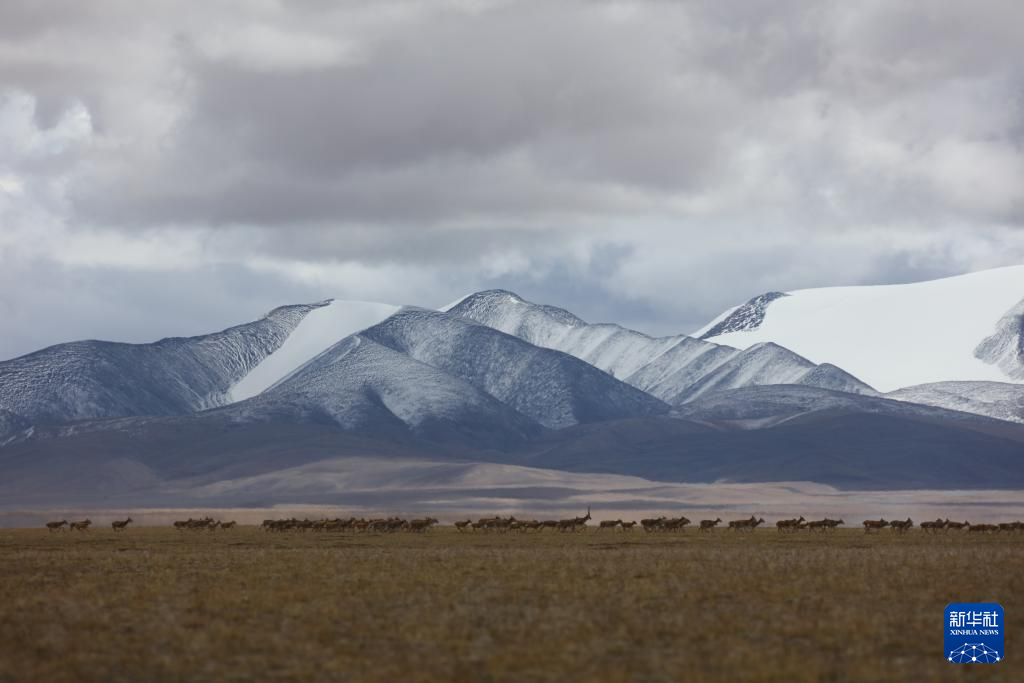 這是令戈錯(cuò)湖邊的藏羚羊群(9月8日攝)。新華社記者 劉詩(shī)平 攝