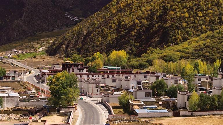 金秋時節(jié),走進拉薩市墨竹工卡縣城,仿佛步入一幅絢麗多彩的油畫之中。深秋的墨竹工卡,天空格外湛藍,潔白的云朵像棉花糖一般飄浮空中。整個縣城的街道被金黃的樹葉裝點得格外美麗,風一吹,樹葉紛紛飄落,猶如金色的蝴蝶翩翩起舞,兩旁的樹木色彩斑斕,有金黃的銀杏、橙黃的楊樹,交相輝映,構成了一幅美不勝收的秋日畫卷。