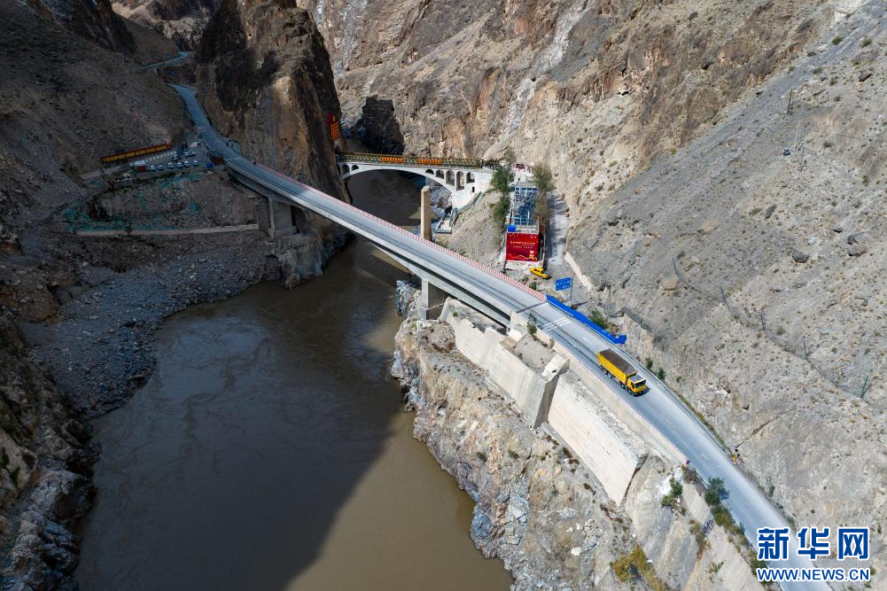 10月13日拍攝的怒江大橋(無(wú)人機(jī)照片)。新華網(wǎng) 旦增努布 攝