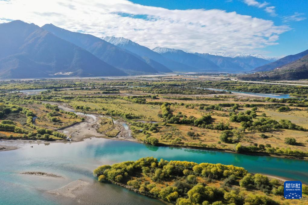 這是10月24日在西藏林芝雅尼國家濕地公園內(nèi)拍攝的尼洋河(無人機照片)。新華社記者 李賀 攝