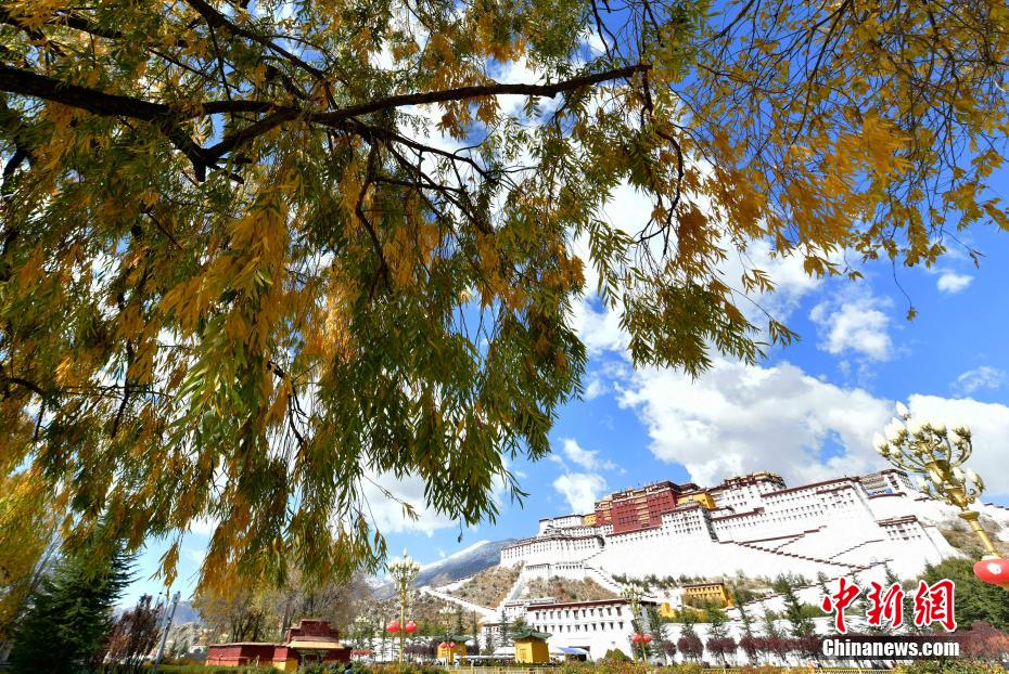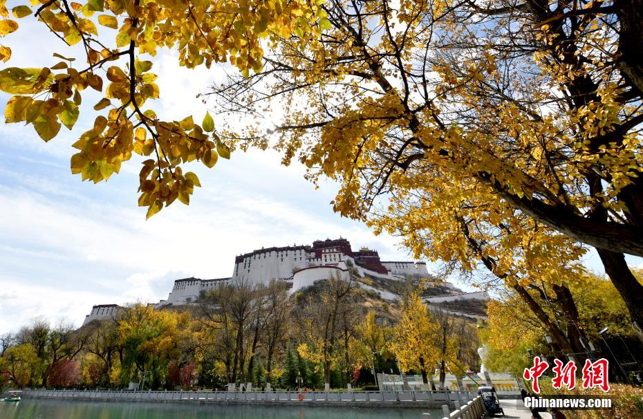 11月6日,位于西藏拉薩的世界文化遺產(chǎn)布達拉宮在周圍樹葉的映襯下色彩斑斕。中新社記者 李林 攝