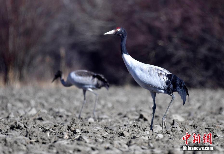 黑頸鶴是全球十五種鶴類中唯一在高原地區(qū)繁殖和越冬的鶴類,有著“高原精靈”之稱,屬中國國家一級保護動物。位于雅魯藏布江與年楚河交匯處的西藏日喀則市桑珠孜區(qū)邊雄鄉(xiāng)有著廣袤的農田和濕地,是黑頸鶴的主要越冬地之一。圖為11月20日,黑頸鶴在西藏日喀則市桑珠孜區(qū)邊雄鄉(xiāng)農田內覓食。