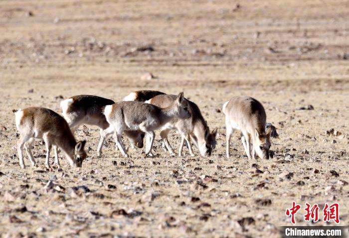 圖為12月5日,西藏那曲市申扎縣境內(nèi)的中國國家二級保護(hù)動(dòng)物藏原羚正在覓食。中新社記者 李林 攝