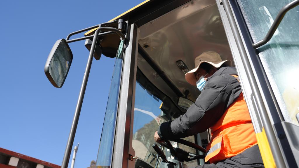 斯朗曲培正在駕駛裝載機(12月7日攝)。蔣夢辰 攝
