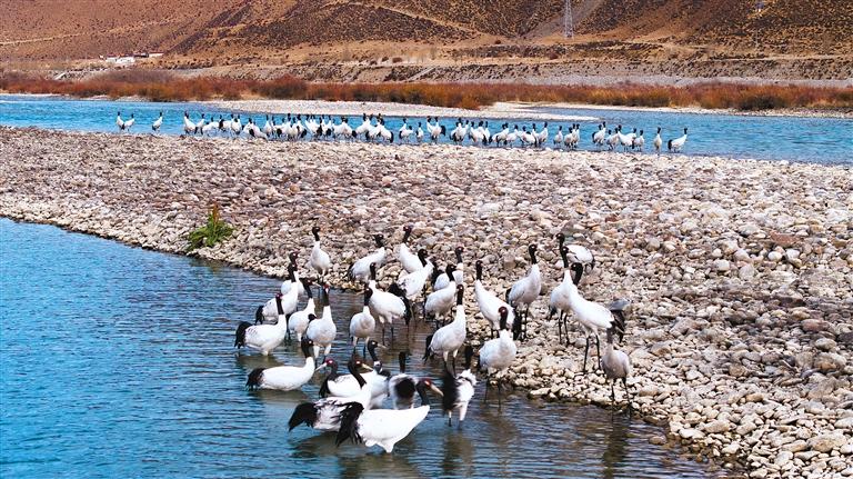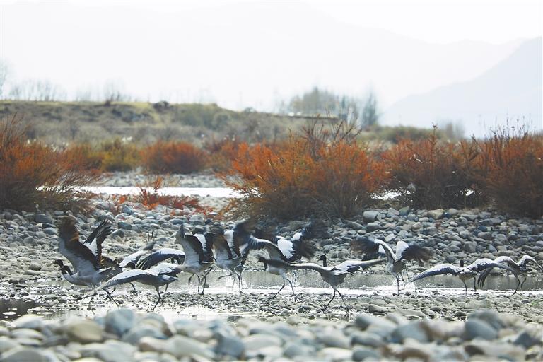圖片均為黑頸鶴在墨竹工卡境內(nèi)棲息的場景。