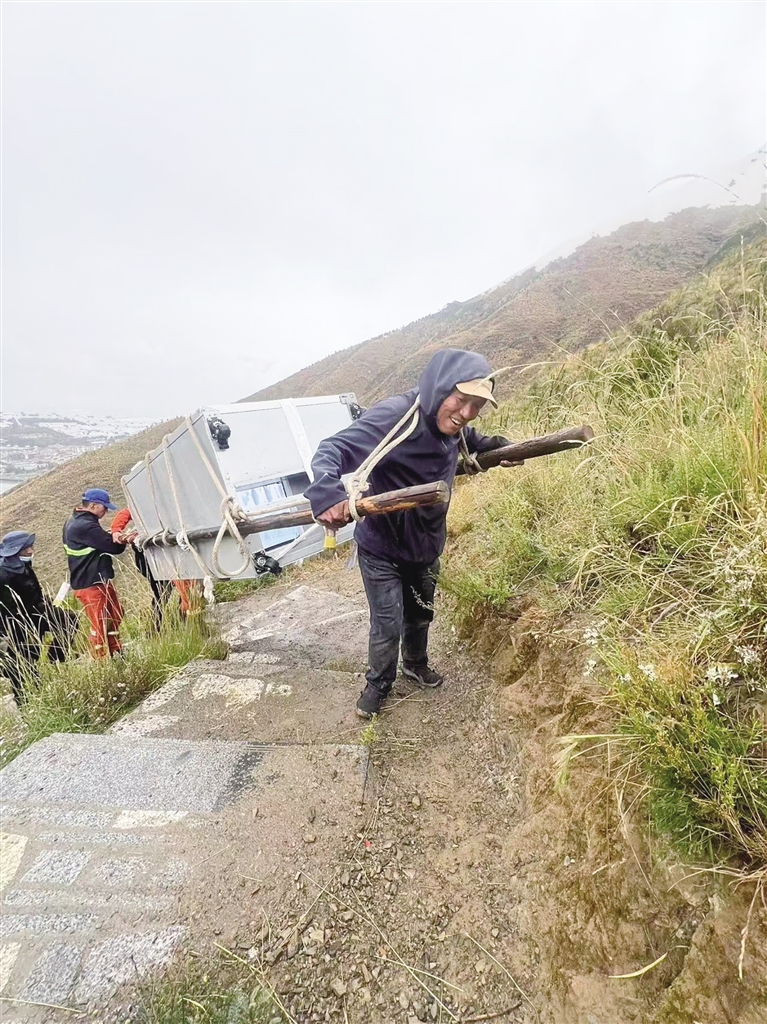為了方便游客喝到平價(jià)飲料,單位引進(jìn)了12臺(tái)售賣機(jī),安裝在公園各個(gè)角落,售賣機(jī)里各種飲料、礦泉水等商品跟超市售賣的價(jià)格基本一致。扎西曲培說,他們將售賣機(jī)安裝在海拔4000米的地方,過程是艱難的。一臺(tái)售賣機(jī)重約400斤,車輛上不去,他和森林消防隊(duì)員通過人背肩扛,一步步抬上去的。目前,在南山公園“祖國(guó)萬歲”的山峰處,大家口渴了,拿出手機(jī)掃描一下,即可喝到平價(jià)的礦泉水。