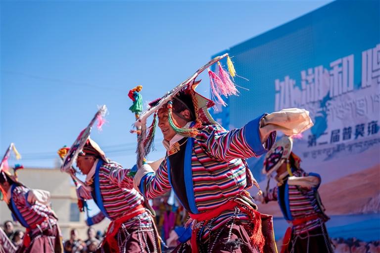 活動(dòng)在浪卡子縣打隆鎮(zhèn)推瓦村舉辦。普莫雍錯(cuò)冬季封凍后,會形成如夢如幻的幽藍(lán)冰面,因此被贊譽(yù)為“中國貝加爾湖”。每年2月前后,當(dāng)湖面完全冰封,推瓦村村民便會集結(jié)羊群,趕著它們踏上冰面,前往湖心島過冬,這一延續(xù)千年的冰上趕羊傳統(tǒng),承載著深厚的歷史文化底蘊(yùn)。