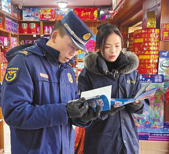 拉薩市消防救援支隊(duì)宣傳員走進(jìn)煙花爆竹經(jīng)銷點(diǎn),為店員科普易燃易爆場(chǎng)所消防安全知識(shí)。通訊員 肖暄 攝