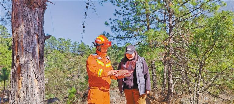林芝市察隅縣消防救援大隊(duì)宣傳員走進(jìn)旅游景區(qū),為游客科普林區(qū)防火常識(shí)。通訊員 肖暄 攝