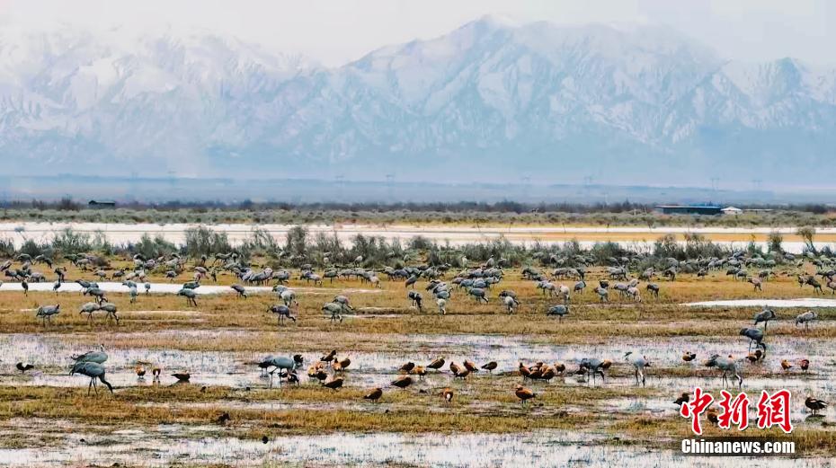 連日來,成群灰鶴聚集于青海省海西蒙古族藏族自治州都蘭縣巴隆鄉(xiāng)鐵絲蓋地區(qū)。灰鶴是國家二級重點保護野生動物。圖為灰鶴等野生鳥類群在濕地休憩。