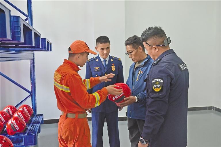 林芝市波密縣森林消防中隊消防員向縣公安局民警講解消防設(shè)備使用方法。記者 謝筱純 劉楓 通訊員 晉美 攝