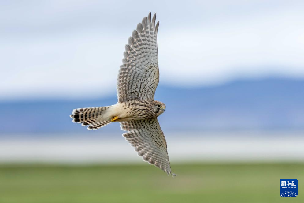 7月22日拍攝的瑪旁雍錯濕地上棲息的國家二級保護野生動物紅隼。新華社記者 旦增尼瑪曲珠 攝