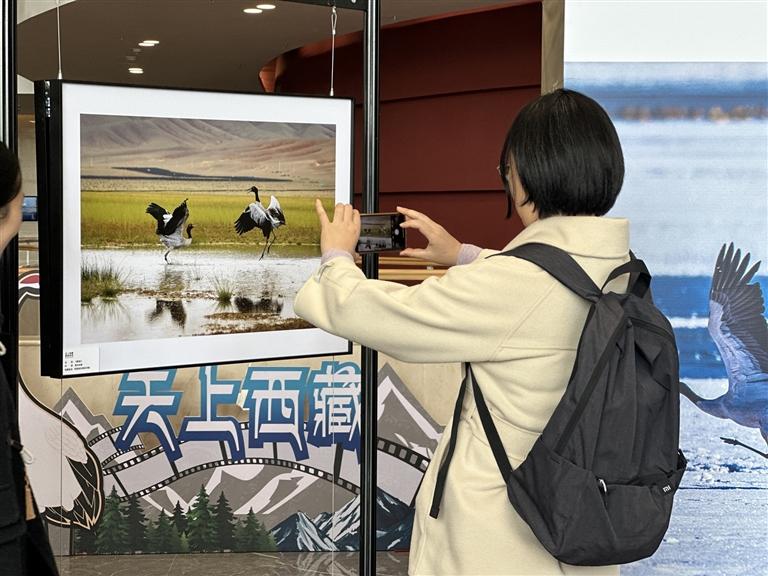 據(jù)介紹,黑頸鶴是世界上唯一一種在高原地區(qū)繁殖、生活的鶴類。近年來,隨著全區(qū)生態(tài)保護(hù)力度不斷加強(qiáng),黑頸鶴種群數(shù)量穩(wěn)步增長、棲息地范圍持續(xù)擴(kuò)大。今年2月,黑頸鶴當(dāng)選拉薩市鳥。本次巡展在首次“天上西藏·鶴鶴有鳴”主題攝影展的基礎(chǔ)上,進(jìn)一步拓展展覽內(nèi)容,豐富展覽形式,旨在以“高原精靈”黑頸鶴為媒介,積極探索“文旅+生態(tài)”融合發(fā)展的新路徑,力爭將“天上西藏·鶴鶴有鳴”打造成高原文旅特色品牌。未來西藏將打造更多特色鮮明的觀鳥線路、旅游攝影點,發(fā)展綠色旅游和“觀鳥經(jīng)濟(jì)”,吸引更多游客走進(jìn)西藏,領(lǐng)略西藏獨特的生態(tài)魅力和人文風(fēng)情。