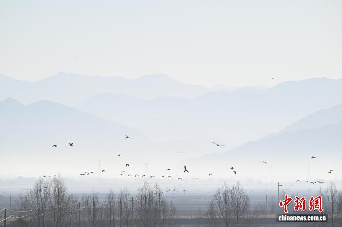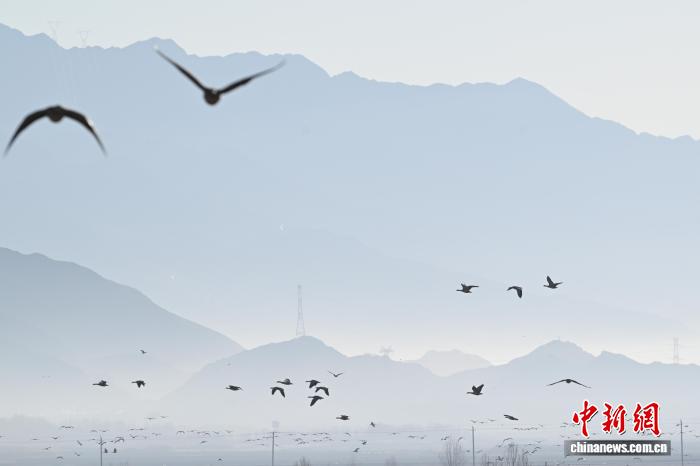 1月19日,西藏拉薩市林周縣黑頸鶴自然保護(hù)區(qū)內(nèi),成群候鳥在此越冬棲息。這里的濕地、農(nóng)田與水庫構(gòu)成絕佳棲息地,黑頸鶴、斑頭雁、赤麻鴨等萬余只候鳥在此集結(jié)。它們或凌空盤旋、或田間覓食,繪就高原生態(tài)畫卷。中新社記者 貢嘎來松 攝
