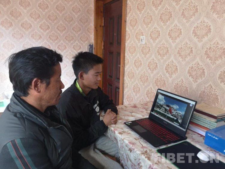 圖為學(xué)生和家長在家中通過網(wǎng)絡(luò)共同參與紀(jì)念活動(dòng) 圖片由拉薩中學(xué)提供