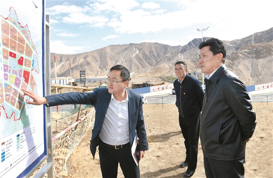 4月16日上午,市委副書記、市長、城關(guān)區(qū)委書記果果調(diào)研拉薩高新區(qū)部分在建項(xiàng)目進(jìn)展情況。圖為果果在施工現(xiàn)場查看工程效果圖、聽取拉薩高新區(qū)負(fù)責(zé)人的匯報(bào)。拉薩融媒記者 巴桑次仁攝