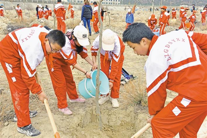 西藏林芝廣東實驗學(xué)校組織學(xué)生參加義務(wù)植樹活動