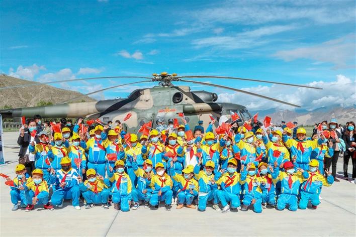 飛行訓(xùn)練結(jié)束后,駐地小學(xué)學(xué)生為飛行員獻(xiàn)上鮮花?!袄蠋?,飛行員們可真酷,我也想成為這么酷的人。”看著飛行員們,學(xué)生小卓瑪拉著老師偷偷說道。