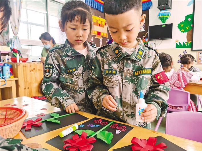 圖為教師節(jié)來臨之際,西藏軍區(qū)機關(guān)幼兒園的學(xué)生為老師制作節(jié)日祝??ㄆS浾?王莉 攝