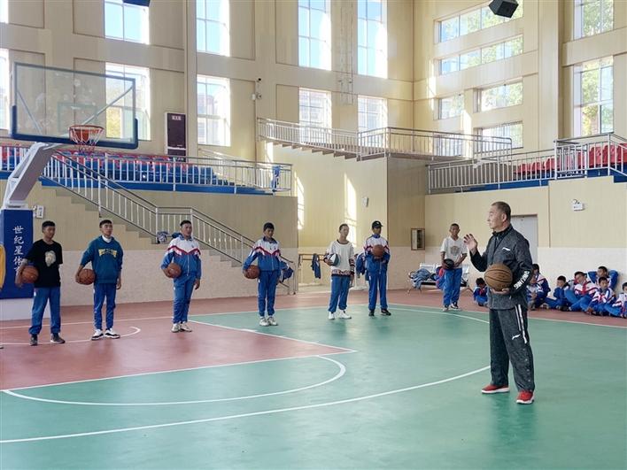現(xiàn)場,王志國與學(xué)生對籃球打法和技巧進行了交流。