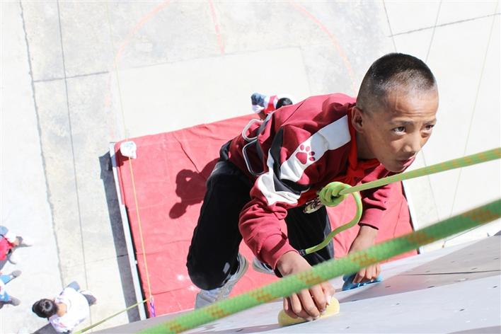 在日喀則市桑珠孜區(qū)第三小學(xué),西藏自治區(qū)登山隊(duì)攀巖隊(duì)6名運(yùn)動(dòng)員分別向?qū)W生展示了競(jìng)技攀巖中的男、女速度賽和難度賽項(xiàng)目表演?;顒?dòng)中,運(yùn)動(dòng)員們?yōu)閷W(xué)生普及攀巖基本知識(shí),還通過親身示范、分組競(jìng)技展現(xiàn)攀巖的魅力,讓他們體驗(yàn)攀巖樂趣,為普及發(fā)展攀巖運(yùn)動(dòng)打下堅(jiān)實(shí)基礎(chǔ),同時(shí)讓更多的青少年了解、認(rèn)識(shí)這項(xiàng)運(yùn)動(dòng),并為青少年健康成長(zhǎng)提供良好的服務(wù)。