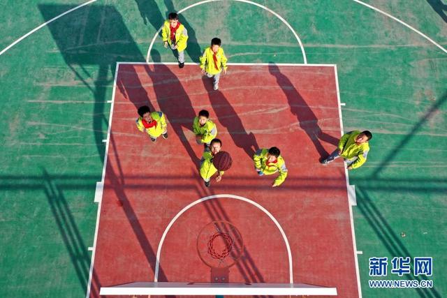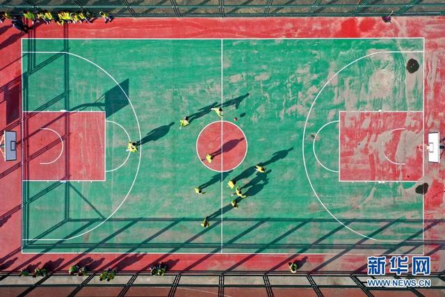 11月12日,學生在大課間打籃球(無人機照片)。 位于山東省青島市即墨區(qū)的青島藍谷高新區(qū)東皋埠小學是一所鄉(xiāng)村學校,近年來,學校開展以乒乓球、籃球、跳繩等運動為主的大課間活動,讓孩子們在享受運動的同時愉悅身心,增強體質。 新華社發(fā)(梁孝鵬攝)