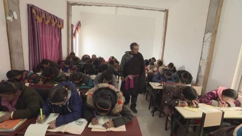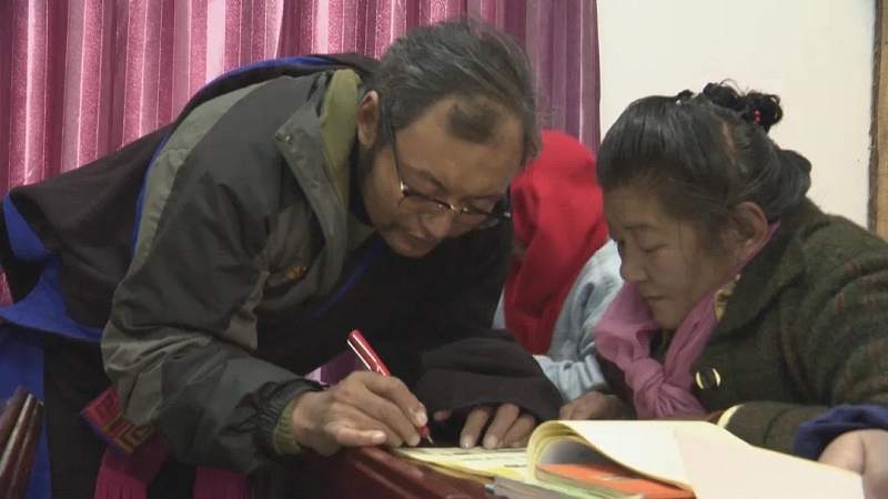 帕那鎮(zhèn)一村宣講員嘎達(dá)耐心的用通俗易懂的本土藏語(yǔ)給這些大齡學(xué)生講漢語(yǔ)拼音課,課堂上有20名來(lái)自附近的牧民群眾,他們不時(shí)低頭做筆記、不時(shí)舉手提問(wèn),生怕錯(cuò)過(guò)每一個(gè)字節(jié)。60歲的次吉是這里年齡最大的學(xué)員,一年中她最期盼的事情就是參加“夜校”學(xué)習(xí)?!拔倚r(shí)候條件不好,沒(méi)有機(jī)會(huì)接受教育,文化水平低,現(xiàn)在條件好了,就來(lái)夜校學(xué)習(xí),老師講得通俗易懂,我感覺(jué)收獲很多?!贝渭獙?duì)說(shuō)。