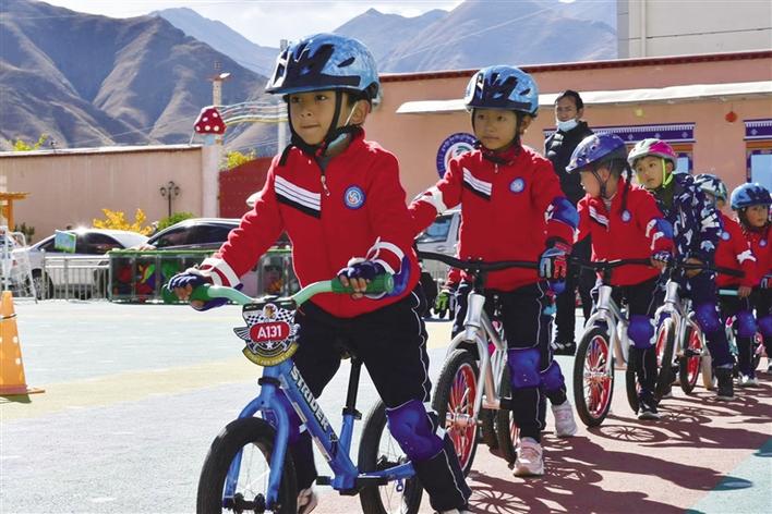 西藏拉薩體育項(xiàng)目進(jìn)校園 萌娃學(xué)練滑步車