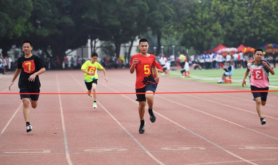 11月26日, 廣西大學附屬中學初中年級學生在200米跑比賽中。新華社記者張愛林攝